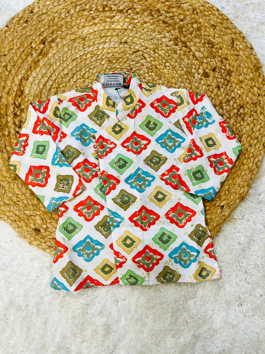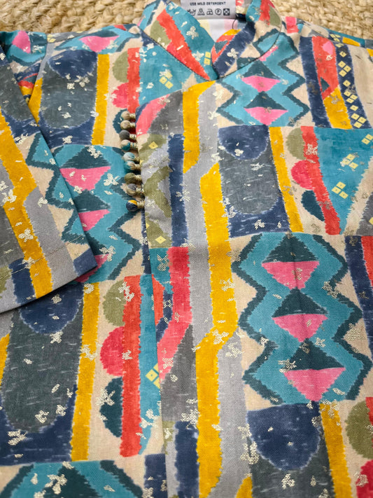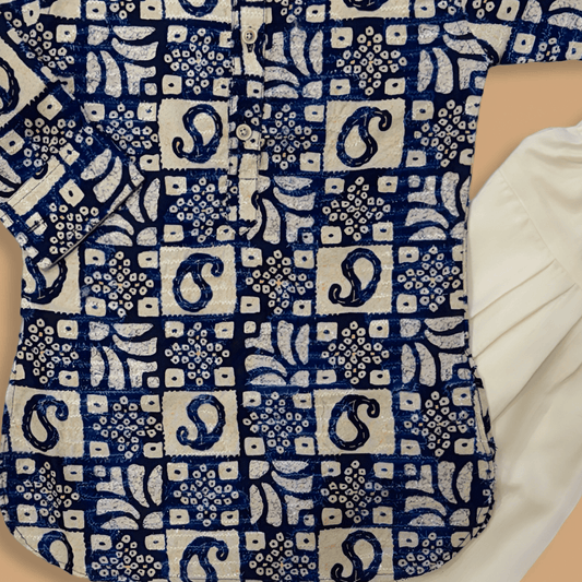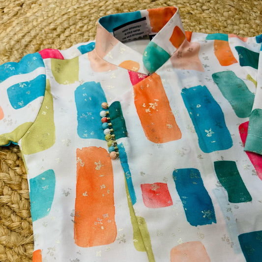 Regular price ā¹1,120Regular priceUnit price perSale price ā¹1,120Sold outBaby Boy Kurta Dhoti Colourful Box Printed Set with Mala and Juti .