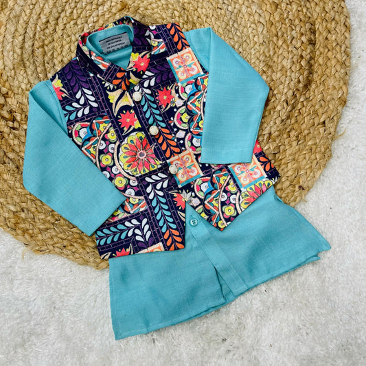 Regular price ā¹1,320Regular priceUnit price perSale price ā¹1,320Sold outBoys Premium Indo Western Kurta-Pajama With Jacket (Skyblue).