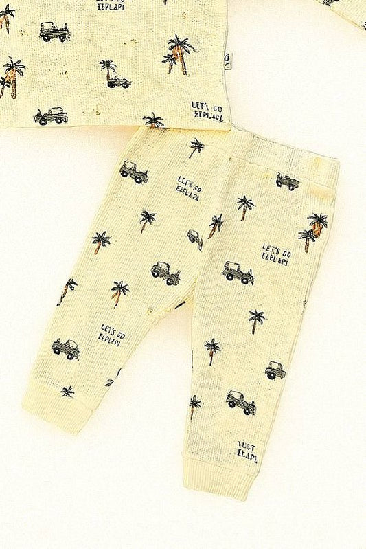 Regular price ₹449Regular priceUnit price per₹499Sale price ₹449SaleBeige waffle knit night suit with safari print
