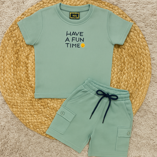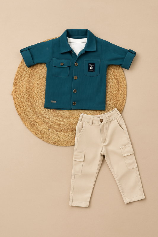 Regular price ā¹695Regular priceUnit price perSale price ā¹695Green Printed Shirt & Beige Shorts Set