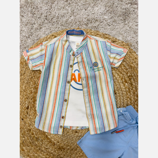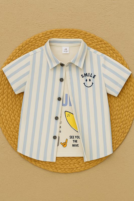 Regular price ā¹745Regular priceUnit price perSale price ā¹745Sold outKIDZELLO Boy's Striped Shirt & Smiley Tee & Shorts Set