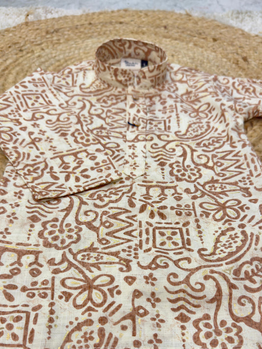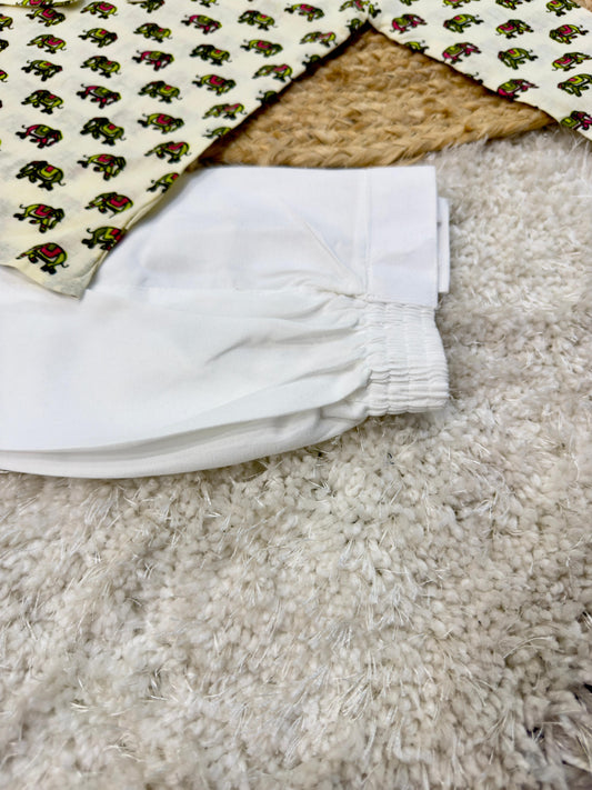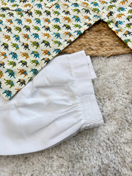 Regular price ā¹849Regular priceUnit price perSale price ā¹849Full Sleeves Cream Color Elephant Printed Kurta With Pyjama set