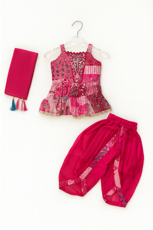 Regular price ₹2,299Regular priceUnit price perSale price ₹2,299Vibrant Pink Patchwork Top & Dhoti Set
