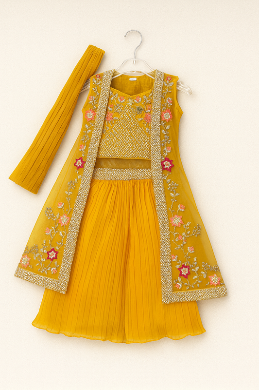 Regular price ₹2,199Regular priceUnit price perSale price ₹2,199Girls’ Ethnic Three-Piece Sharara Set with Shrug and Dupatta