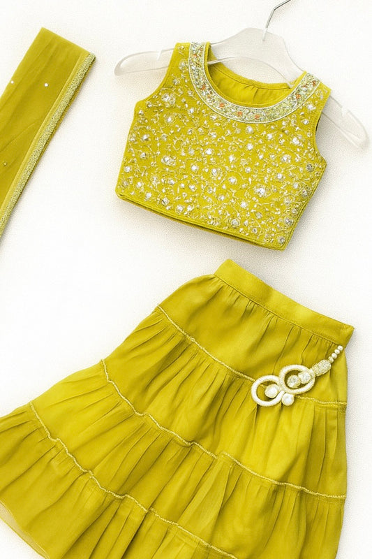 Regular price ₹1,995Regular priceUnit price perSale price ₹1,995Stylish Mirror Work Choli with Tiered Lehenga & Dupatta