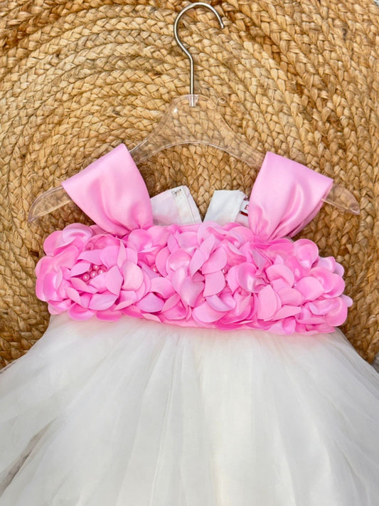Regular price ₹1,700Regular priceUnit price perSale price ₹1,700Sleeveless Floral Applique Detailed Tutu Net Dress - Pink White