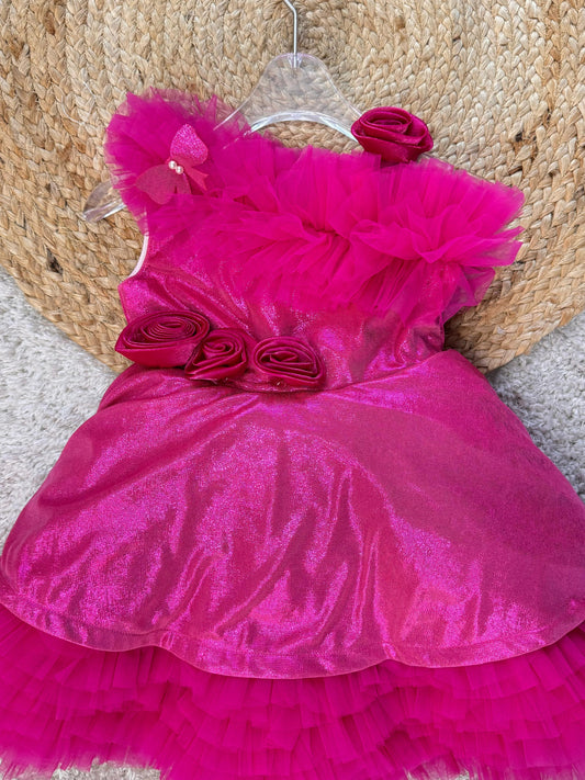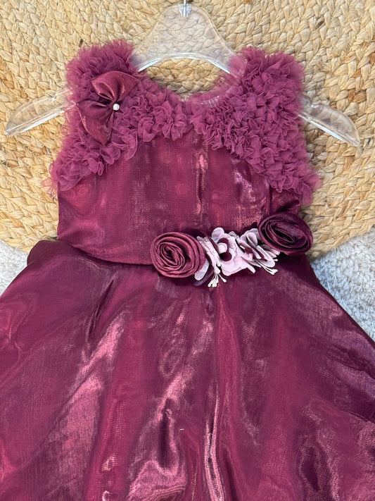 Regular price ₹1,920Regular priceUnit price perSale price ₹1,920Net Sleeveless Party Frock With Bow Corsage - Maroon