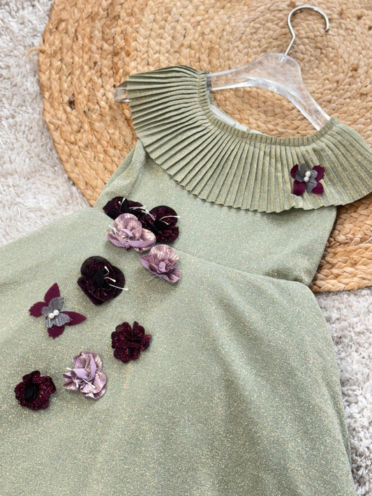 Regular price ₹1,850Regular priceUnit price perSale price ₹1,850Pista Green Long Gown For Kids With Hand Work