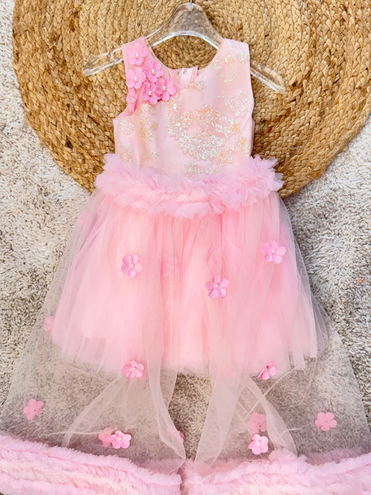 Regular price ₹1,945Regular priceUnit price perSale price ₹1,945Sleeveless Floral Applique Flower Flared Party Wear Frock With layer - Pink