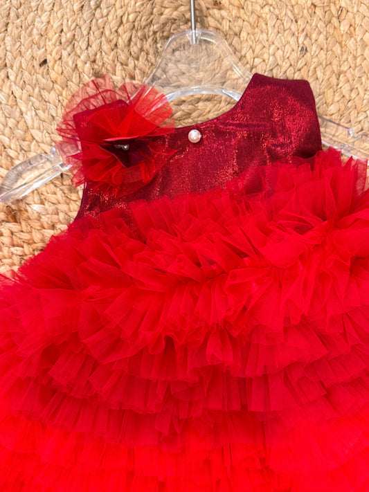 Regular price ₹1,049Regular priceUnit price perSale price ₹1,049One Shoulder Sleeveless Party Frock with Floral Embroidery With Shoes - Red