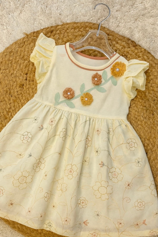 Regular price ₹575Regular priceUnit price perSale price ₹575Soft Beige frock with floral embroidery detailing