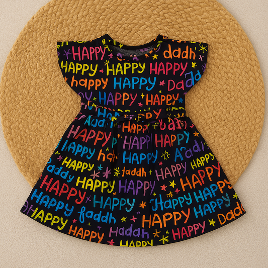 Regular price ₹575Regular priceUnit price perSale price ₹575Happy Graphic Print Frock For Girls