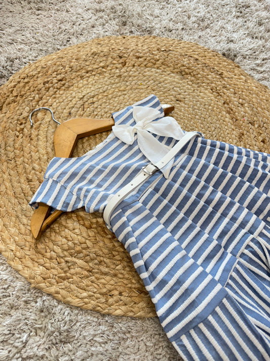 Regular price ₹360Regular priceUnit price perSale price ₹360Sleeveless Striped Dress with Bow Accent