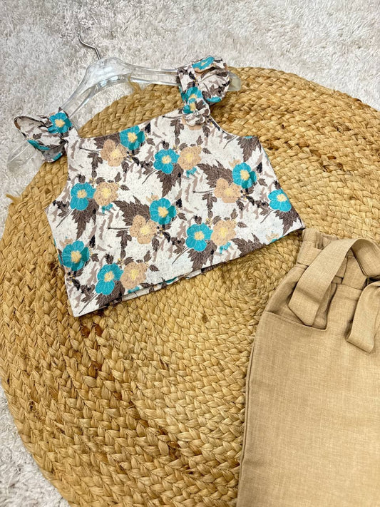 Regular price ₹999Regular priceUnit price per₹999Sale price ₹999Floral Crop Top with Belted Beige Culottes