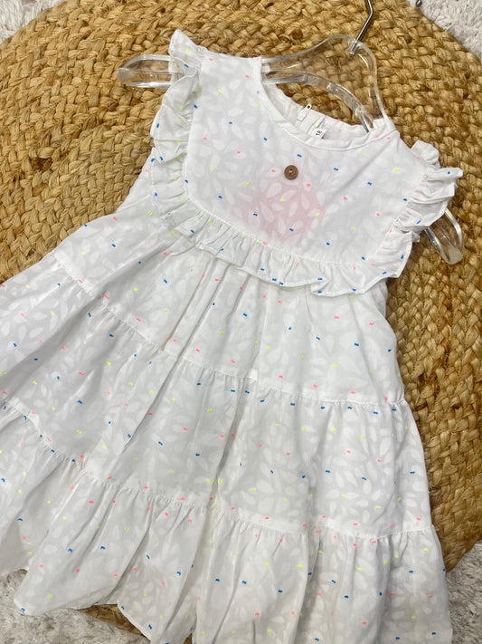 Regular price ā¹440Regular priceUnit price perSold outWhite Tiered Dress with Subtle Pastel Dots