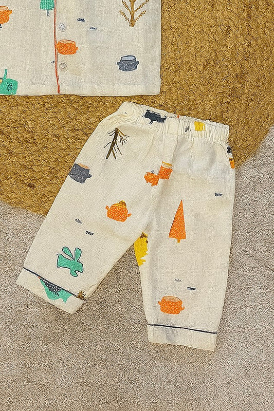 Regular price ā¹799Regular priceUnit price perSale price ā¹799White cotton night suit with forest animal print