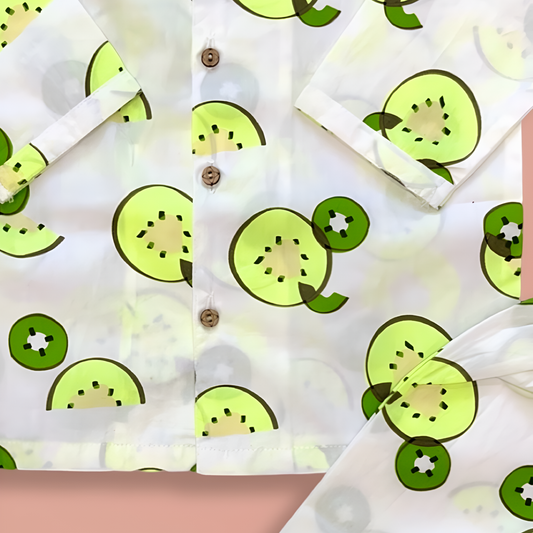 Regular price ā¹649Regular priceUnit price perSale price ā¹649Full Sleeves Kiwi Print Night Suit - White