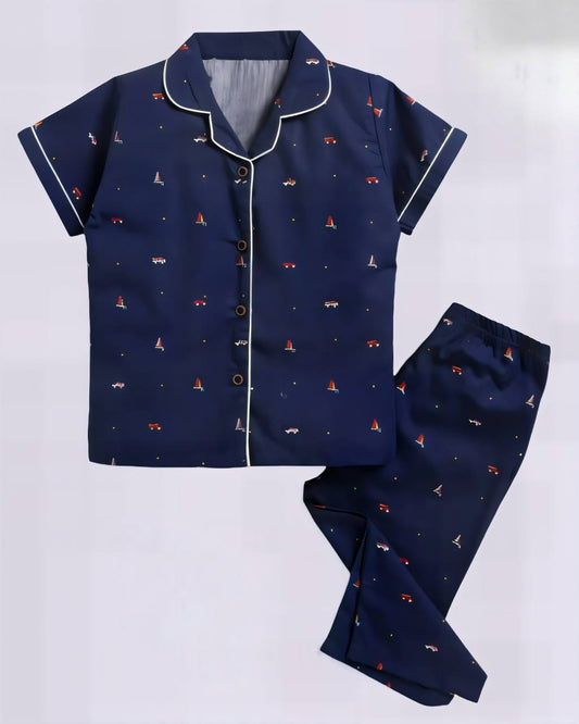 Regular price ā¹649Regular priceUnit price perSale price ā¹649Chiclets Soft Cotton Travel-Print Night Suit for Kids