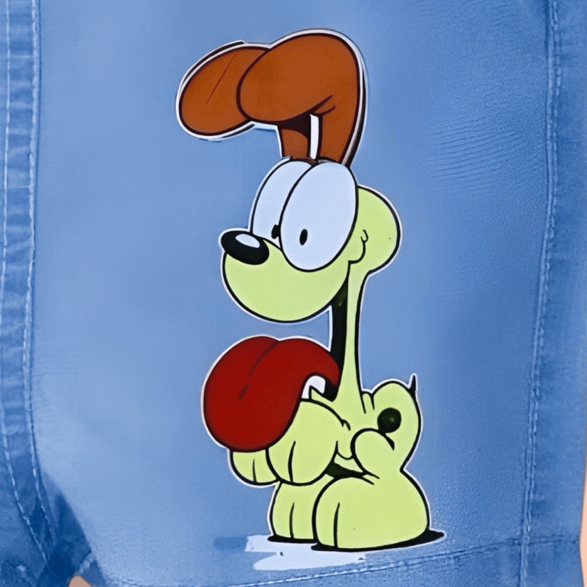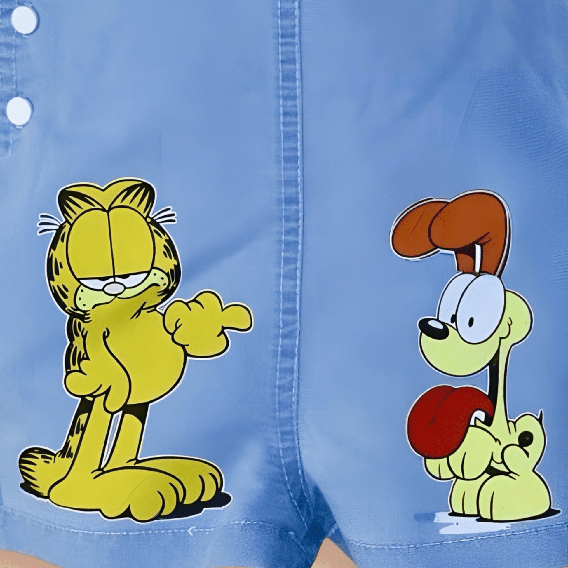Cute Cat and Goofy Cartoon Print Soft Denim Dungaree with White T-shirt - Denim Blue