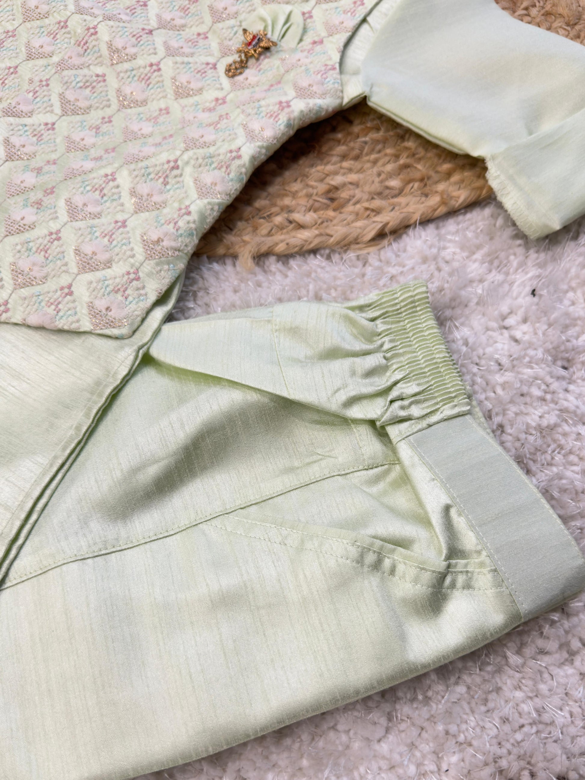 Full Sleeves Solid Color Kurta Pyjama Set with Waistcoat Argyle Print
