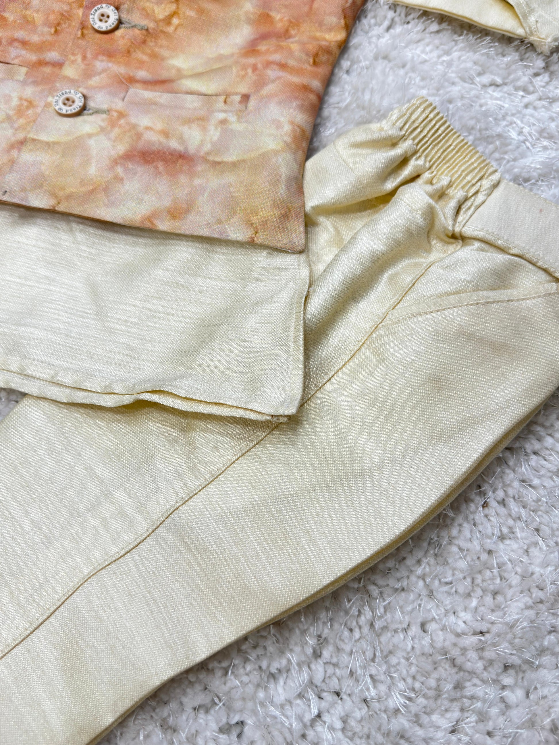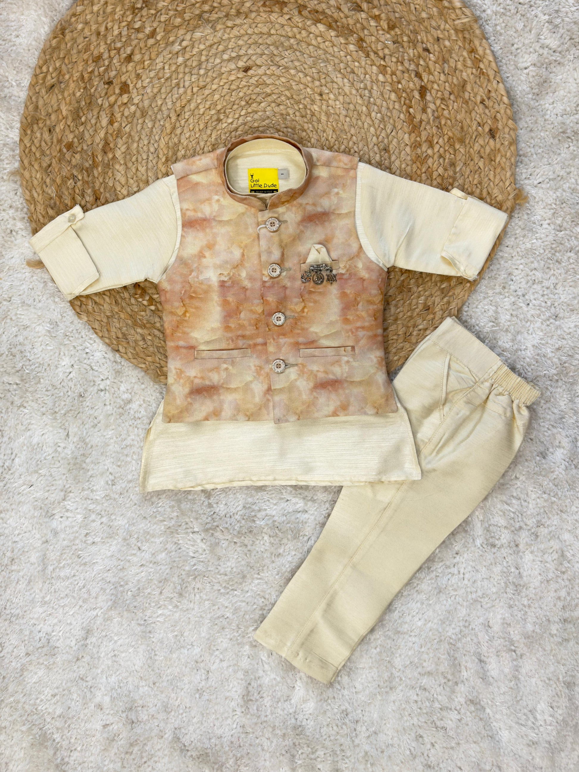 Full Sleeves Solid Color Kurta Pyjama Set with Floral Print Waistcoat Print