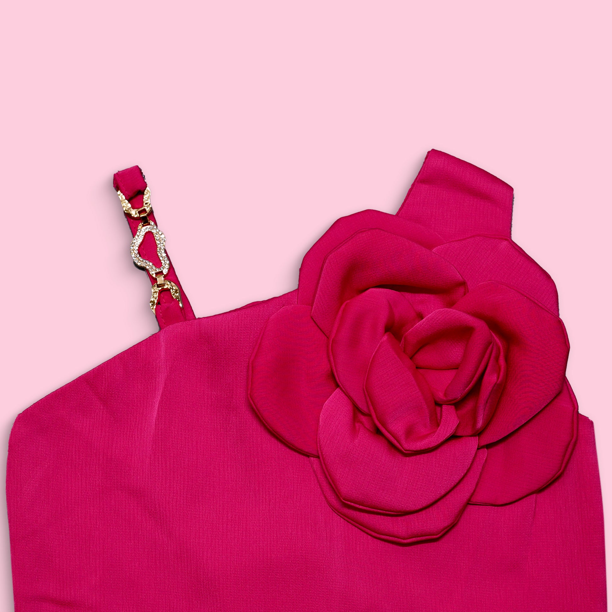 Girls Satin Rose Attached Red Colour Party Wear Top