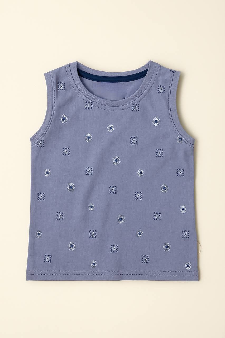 - Keep your little one cool, stylish, and comfortable with our adorable collection of sleeveless cotton tank tops for kids. Designed with love for playful summer days, each top features a unique and fun print — from sea-inspired shells and starfish to ducklings, paw prints, tropical palms, and dainty floral patterns. The soft, breathable cotton fabric ensures all-day comfort, while the sleeveless cut allows for unrestricted movement, making them perfect for playtime, outings, or lounging at home.