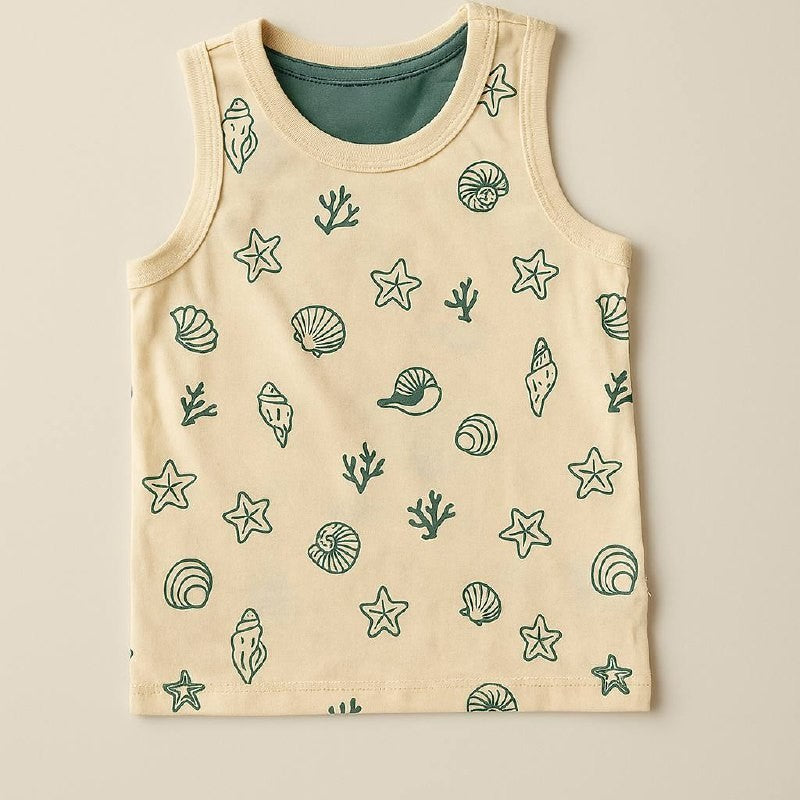 • Keep your little one cool, stylish, and comfortable with our adorable collection of sleeveless cotton tank tops for kids. Designed with love for playful summer days, each top features a unique and fun print — from sea-inspired shells and starfish to ducklings, paw prints, tropical palms, and dainty floral patterns. The soft, breathable cotton fabric ensures all-day comfort, while the sleeveless cut allows for unrestricted movement, making them perfect for playtime, outings, or lounging at home.