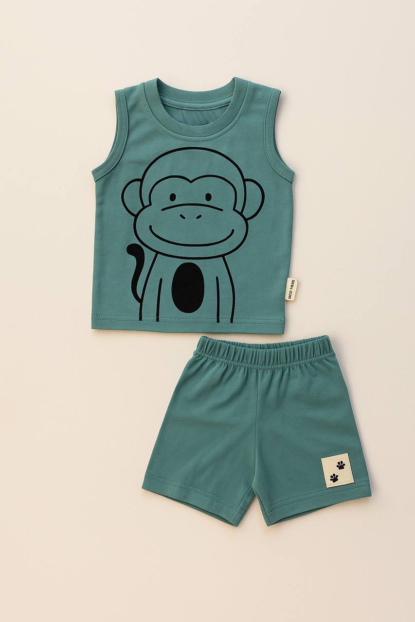 - Let your little one swing into comfort and cuteness with this Monkey Print Sleeveless Co-ord Set – a perfect summer essential for toddlers and young kids. The set features a soft, sleeveless tank top with an adorable cartoon monkey graphic that instantly brightens up the look. Crafted from breathable cotton-blend fabric, the top ensures all-day ease and movement in warm weather.