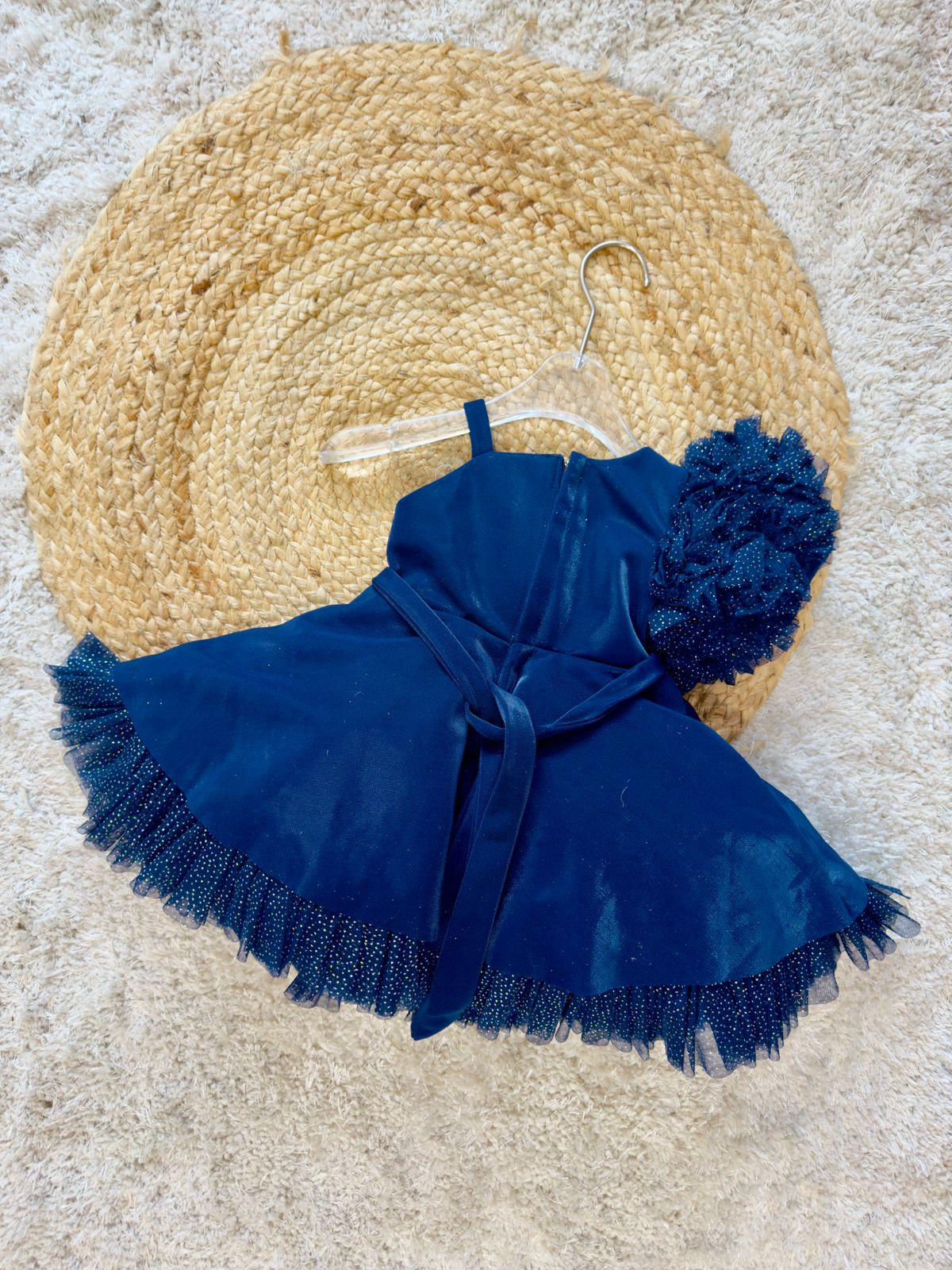 One Shoulder Ruffled & Seamless 3D Flowers And Bow Embellished & Dobby Work