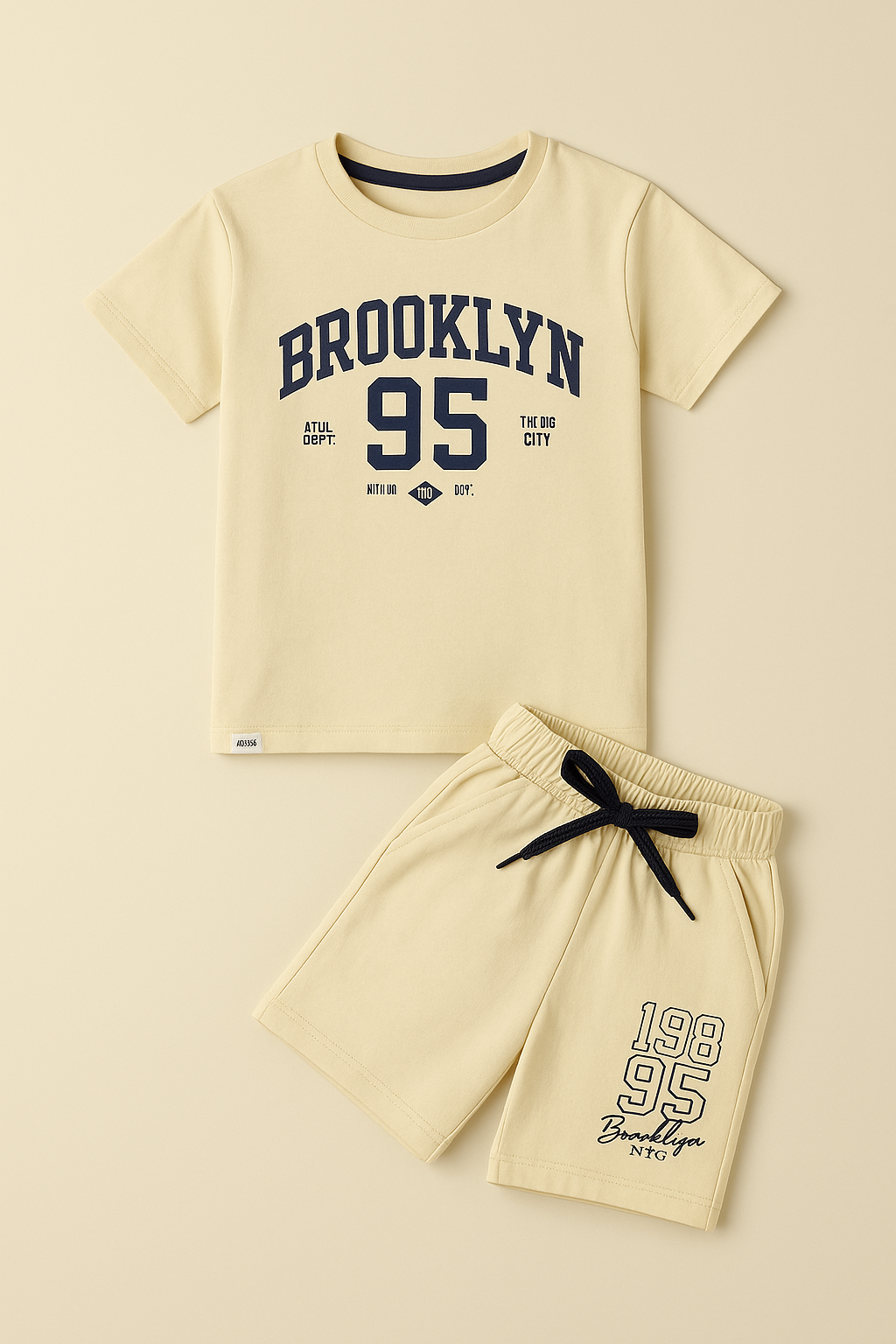Functional and fashionable, the shorts come with side pockets and sporty detailing for a touch of athleisure flair. The graphic typography on both the tee and shorts gives this set a modern, urban edge – making it a favorite among style-savvy parents and kids alike.
