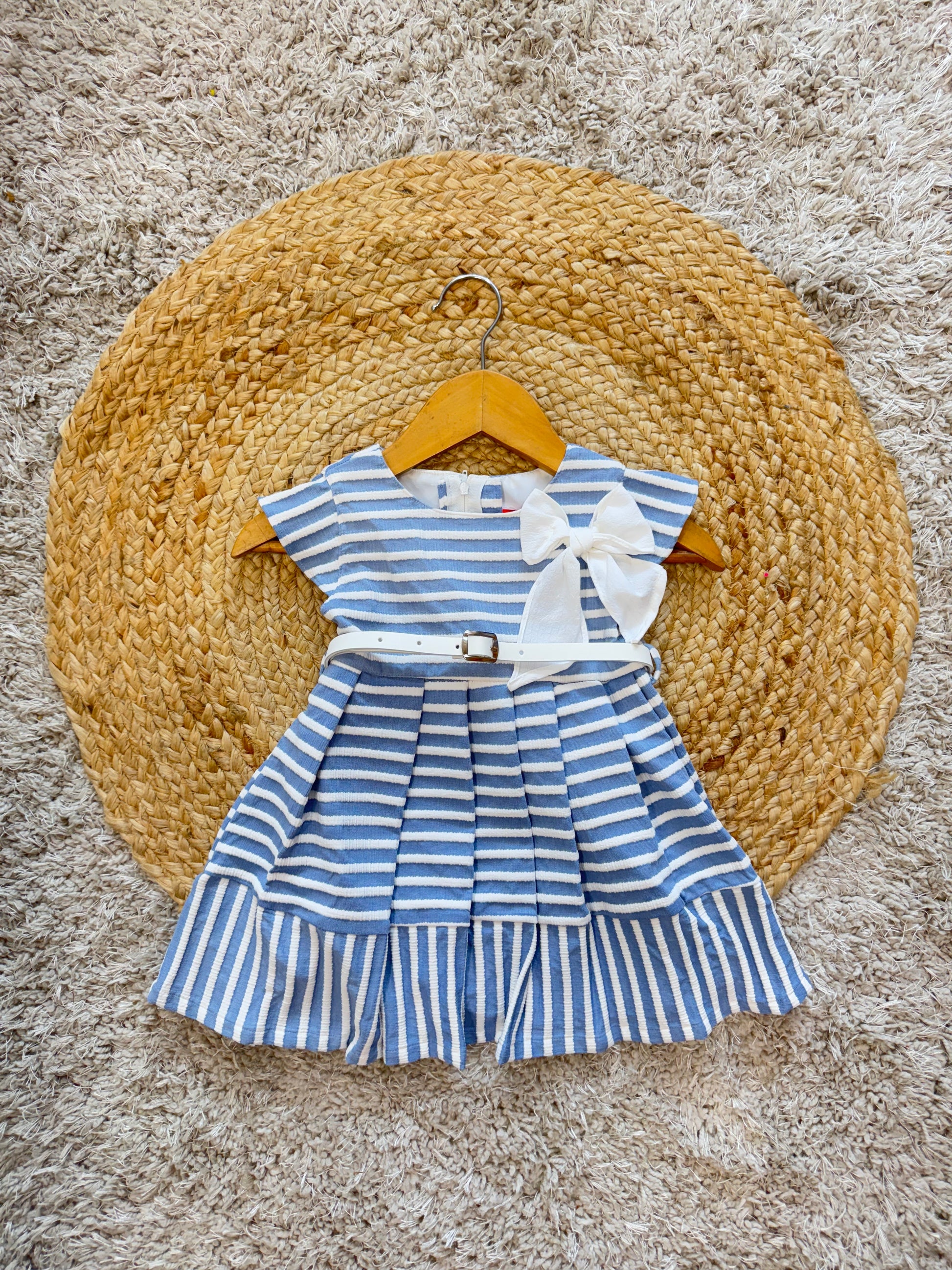 Available in two beautiful color options – dusty pink & white stripes and sky blue & white stripes – this dress is ideal for celebrations, outings, or even everyday elegance.